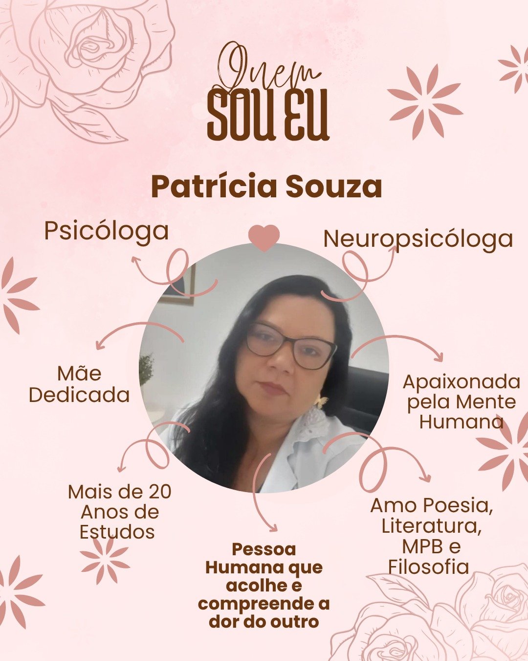 Olá, eu sou Patrícia Souza, sou Neuropsicóloga e Psicóloga Clínica. Sou apaixonada pela mente humana e seus desafios.